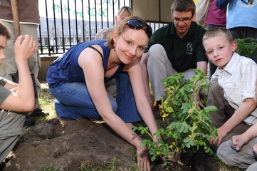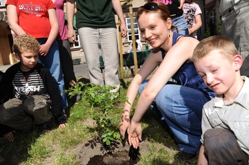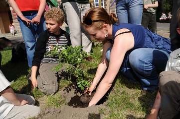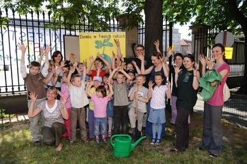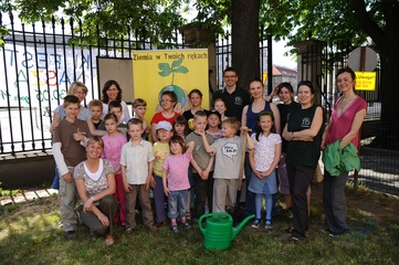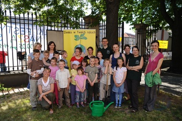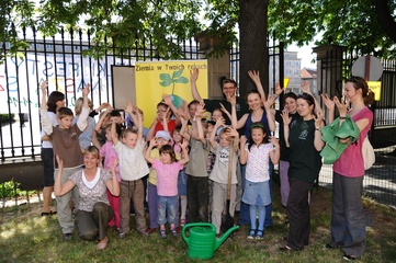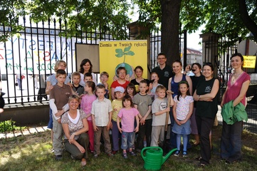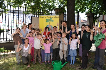 Ekologiczny Dzien Matki ktory zorganizowaly Fundacja Nasza Ziemia i Fundacja Sprzatanie Swiata Polska przed Instytutem Gluchoniemych im Falkowskiego Warszawa