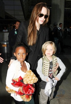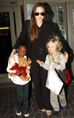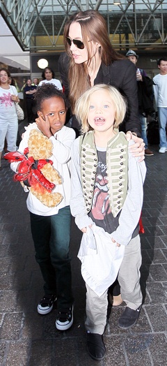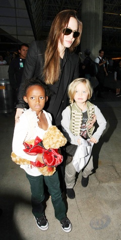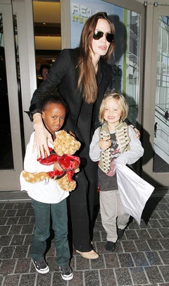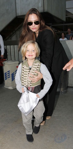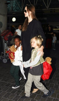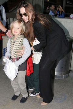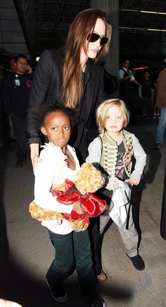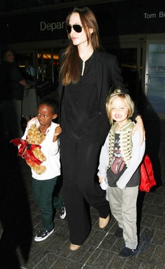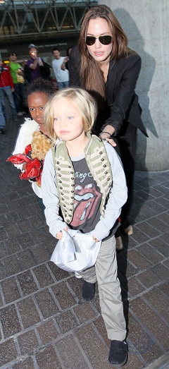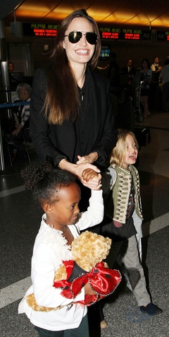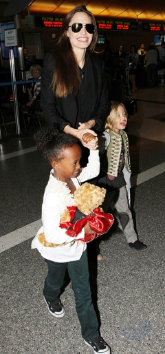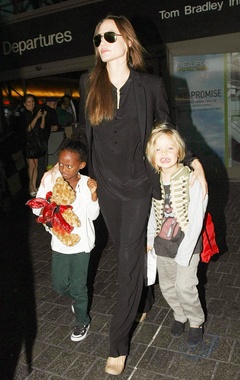 Angelina Jolie z corkami na lotnisku Lax, Los Angeles