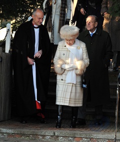 Rodzina Krolewska wraca z kosciola St.Mary Madalene w Sandringham, Londyn