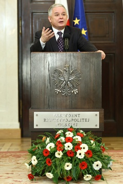 Konferencja prasowa Prezydenta RP Lecha Kaczynskiego na temat emerytur pomostowych
