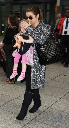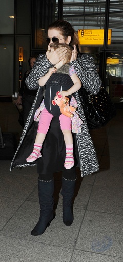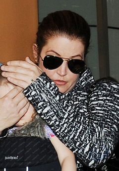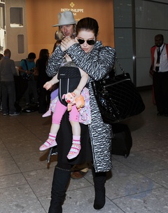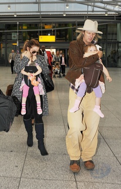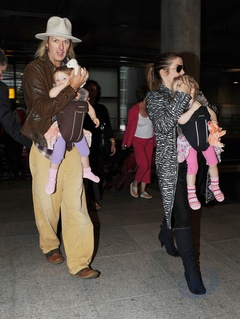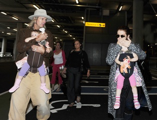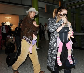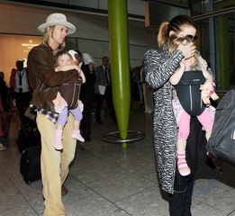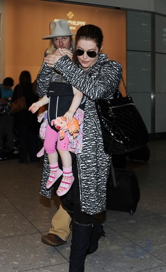 Lisa Marie Presley z mezem i dziecmi na lotnisku, Londyn