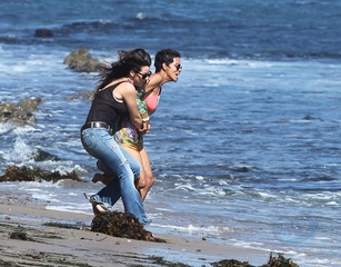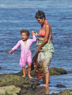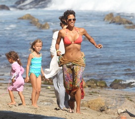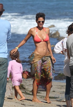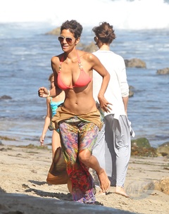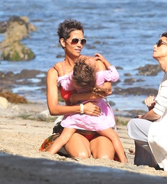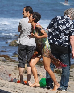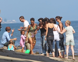 Halle Berry z rodzina i przyjaciolmi podczas swoich urodzin, na plazy w Malibu