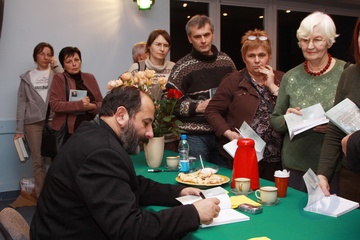 Warszawa Ursus, Dom Kultury, Ks.Tadeusz Isakowicz Zaleski podpisuje swoja nowa ksiazke Przemilczane Ludobojstwo na Kresach