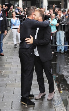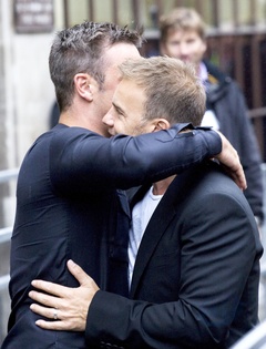 Robbie Williams i Gary Barlow spotkali sie przed siedziba Radio 1 w Londynie