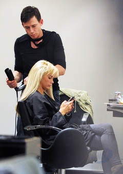 Kate Price w salonie fryzjerskim zmienia fryzure, Londyn