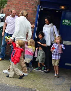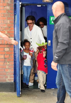 Brad Pitt z dziecmi wraca z komedii 'Pan Popper i jego pingwiny' (Mr. Popper's Penguins) w Richmond