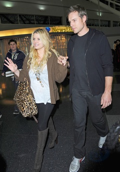 Jessica Simpson i jej narzeczony Eric Johnson na lotnisku, Nowy Jork