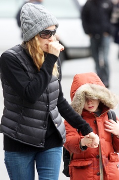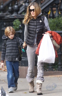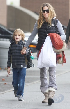 Sarah Jessica Parker z synem wracaja ze szkoly, Nowy Jork