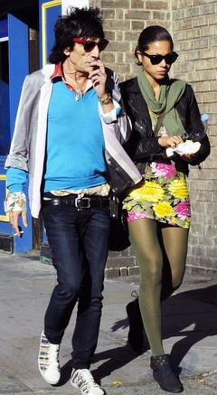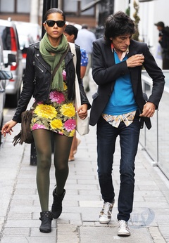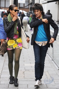 Ronnie Wood z dziewczyna ida na lunch, Londyn