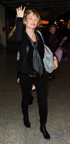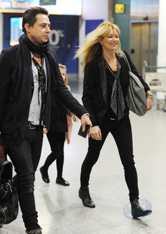 Kate Moss z chlopakiem i corka na lotnisku, Londyn