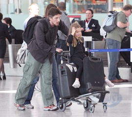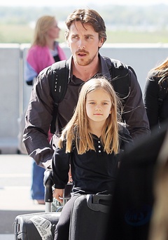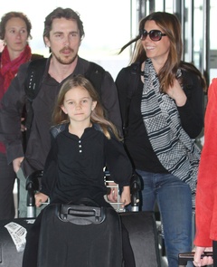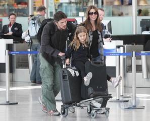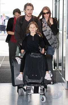 Christian Bale z zona Sandra Blazik i corka na Lotnisku, Londyn