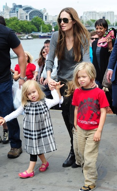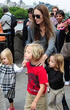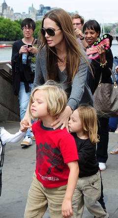 Angelina Jolie z corka Shiloh i z synkiem Knoxem