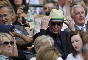 Michael Caine z zona na turnieju tenisowym, Wimbledon
