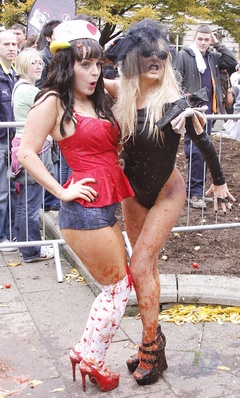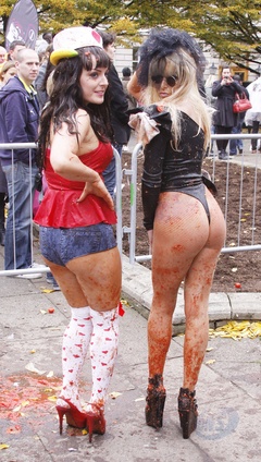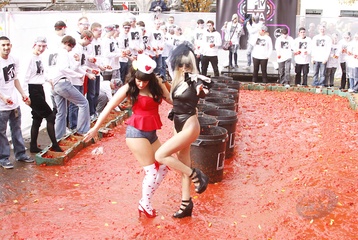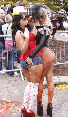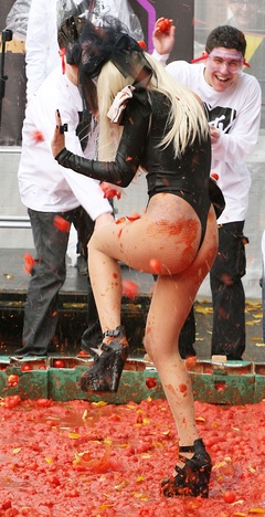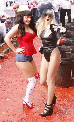 Sobowtory Lady Gagi i Katy Perry walcza w pomidorach, Londyn