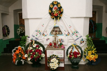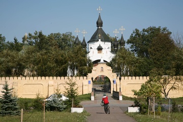 Rezerwat historyczny na uroczysku Kozackuie Mogily i cerkiew-mauzoleum ku czci poleglych kozakow w bitwie pod Beresteczkiem.