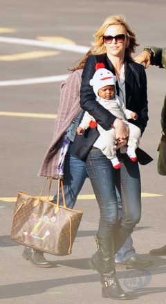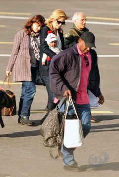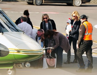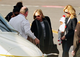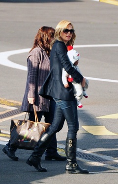 Charlize Theron z synkiem czekaja na helikopter, Londyn