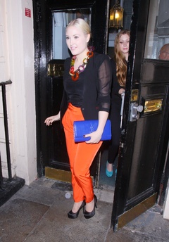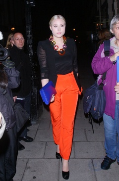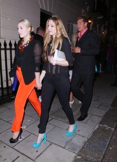 Hayley Hasselhoff w towarzystwie dam wychodzi z teatru, Londyn