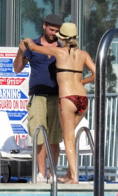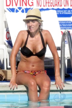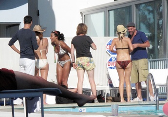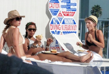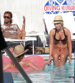 Dziewczyny z The Saturdays popoludniami wypoczywaja na hotelowym basenie, Los Angeles