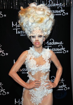 Lady Gaga i Perez Hilton w Muzeum Madame Tussauds, Hollywood