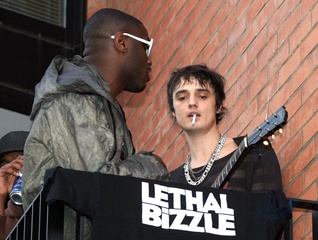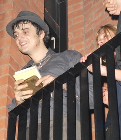 Pete Doherty zabawia sie z przyjaciolmi na tylach Hackney Empire w Londynie