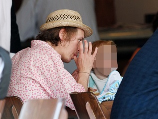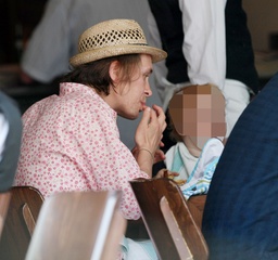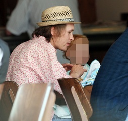 Mark Owen z dziewczyna i synem na lunchu, Londyn