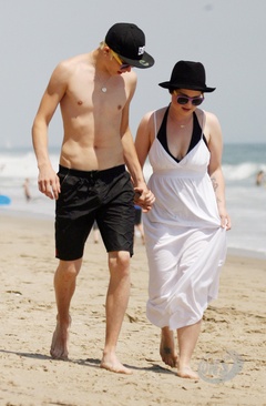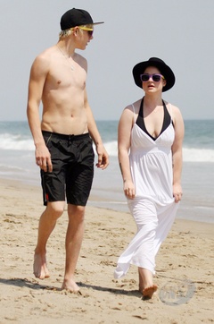 Kelly Osbourne i Luke Worrell na plazy w Malibu