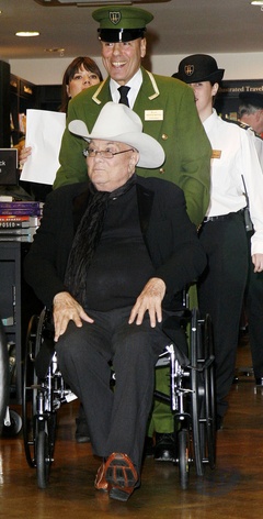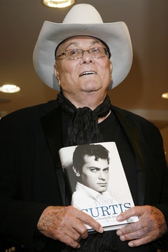 Tony Curtis promuje swoja owa ksiazke pt.: "American Prince: My Autobiography" w Londynie