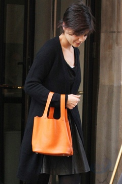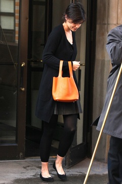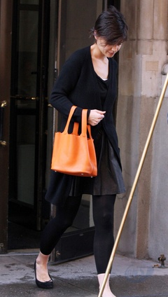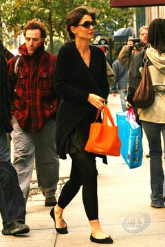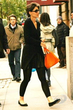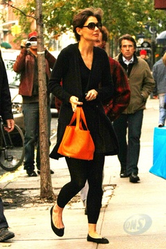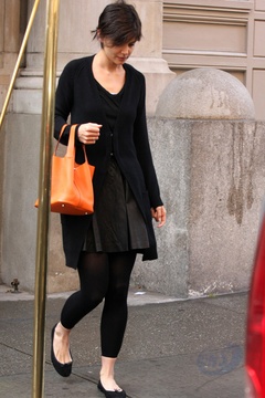 Katie Holmes wychodzi z teatru Schoenfeld w Nowym Jorku