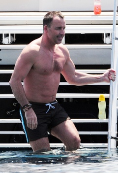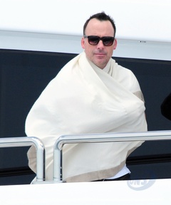 David Furnish na jachcie podczas 62.festivalu Filmowego w Cannes