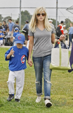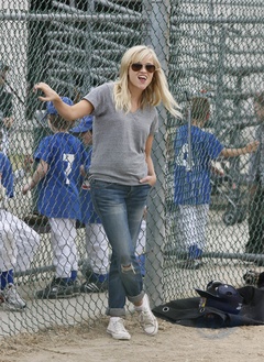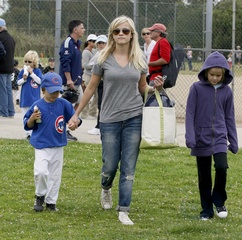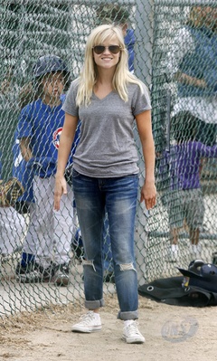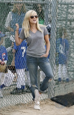 Reese Witherspoon na meczu Malej Ligi, gdzie gra jej syn, Brentwood