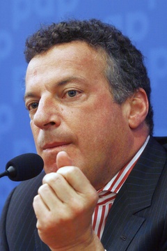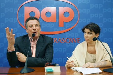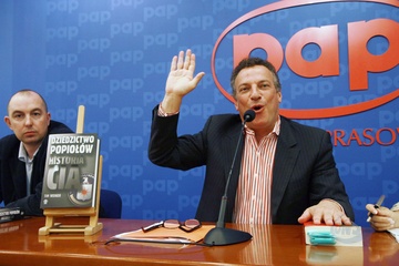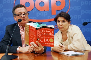 Wizyta w Polsce nowojorskiego reportera i laureata Nagrody Pulitzera, Tima Weinera - autora ksiazki pt. Dziedzictwo popiolow. Historia CIA (Legacy of Ashe. The History of the CIA). Konferencja prasowa w siedzibie PAP w Warszawie