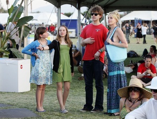 Melanie Griffith z dziecmi podczas Coachella Valley Music & Arts Festival, USA
