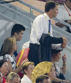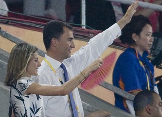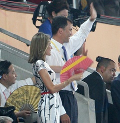 Ksiaze Felipe z zona Letizia podczas otwarcia Igrzysk Olimpijskich w Pekinie, Chiny