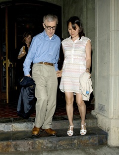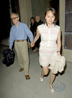 Woody Allen i Soon-Yi wychodza z restauracji Spagos, Beverly Hills