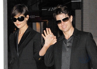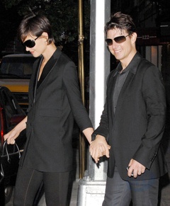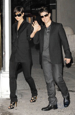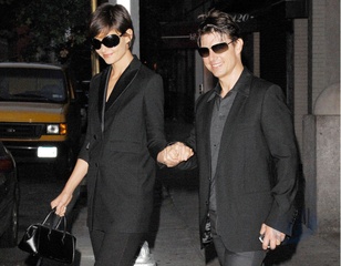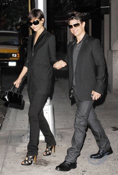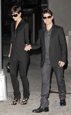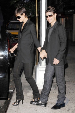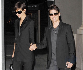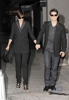 Katie Holmes i Tom Cruise wychodza z apartamentu trzymajac sie za rece, Nowy Jork