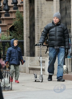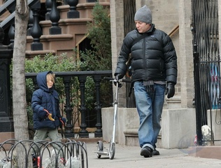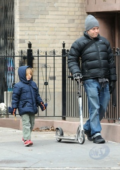 Matthew Broderick z synem na spacerze, Nowy Jork