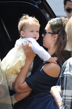 Jessica Alba z corka wraca z restauracji Le Pain Quotidien, Los Angeles