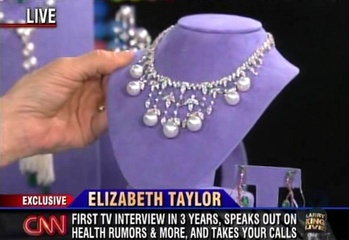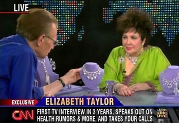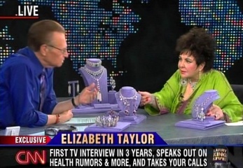 Liz Taylor wystapila w programie Larry'ego King'a w CNN, w ktorym promowala zaprojektowana przez siebie bizuterie
