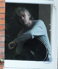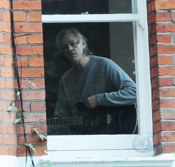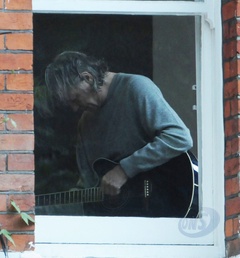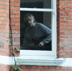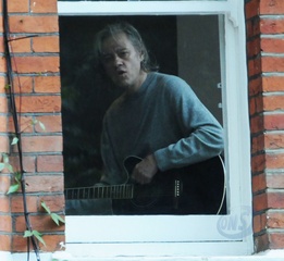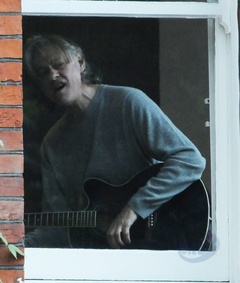 Bob Geldof gra w oknie swojego mieszkania, Londyn