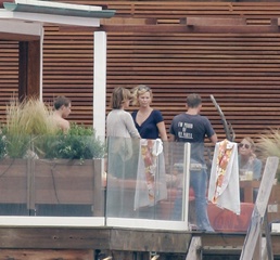 Charlize Theron z przyjaciolmi w domku na plazy, Malibu