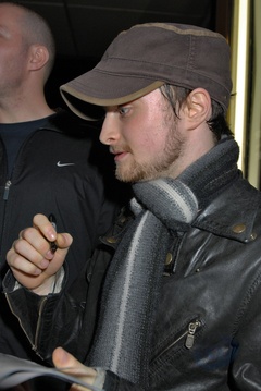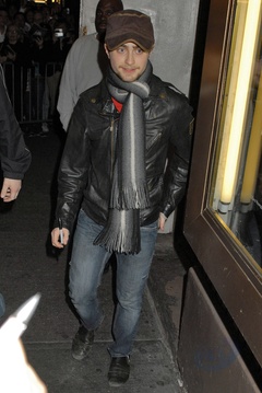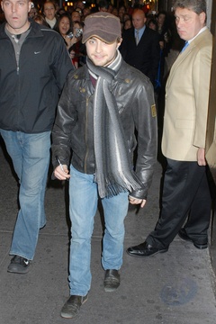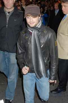 Daniel Radcliffe rozdaje autografy wychodzac z teatru, Nowy Jork