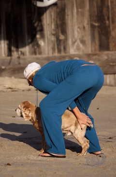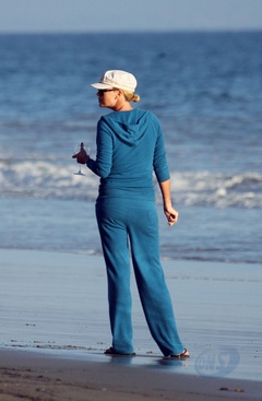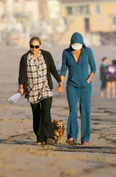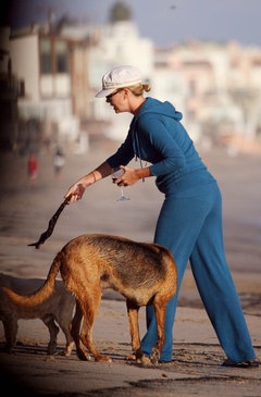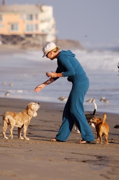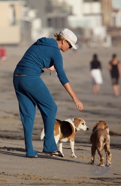 Charlize Theron z psem na plazy, Malibu
