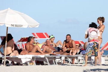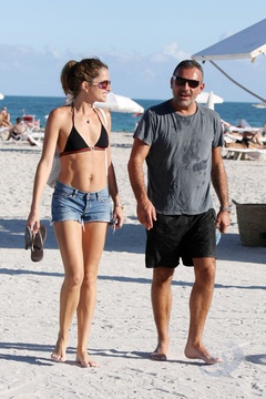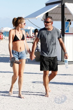Christian Audigier ze swoja dziewczyna na plazy w Miami