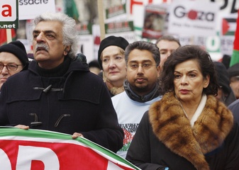 Bianca Jagger na demonstracji przed Ambasada Izraela w Londynie