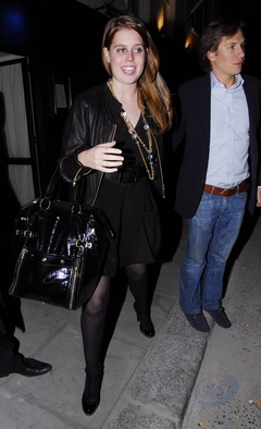 Ksiezniczka Beatrice i jej przyjaciel Dave Clark wracaja z Tiny Bar, Londyn