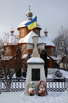 cerkiew i pomnik band UPA w Boryslawiu na Ukrainie