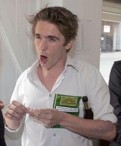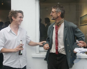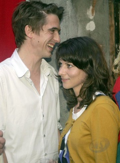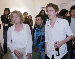 Samuel Irons z matka Sinead Cusack, ojcem Jeremym i dziewczyna Kasia na otwarciu wystawy swoich zdjec z Izraela i Palestyny w The Monster Truck Gallery, Dublin, Irlandia