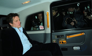 Hugh Grant wraca z restauracji Scotts, Londyn