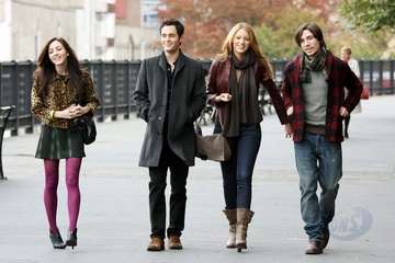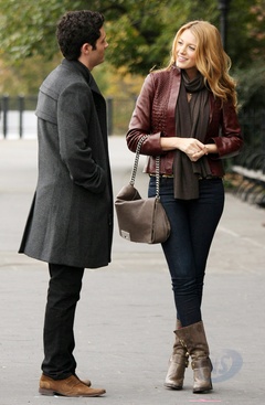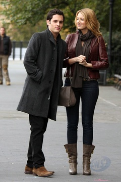 Penn Badgley i Blake Lively na planie filmowym , Nowy Jork