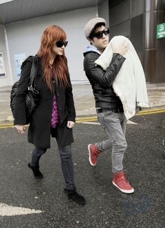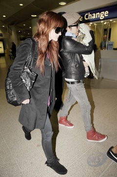 Ashlee Simpson i Pete Wentz z dzieckiem na lotnisku, Manchester